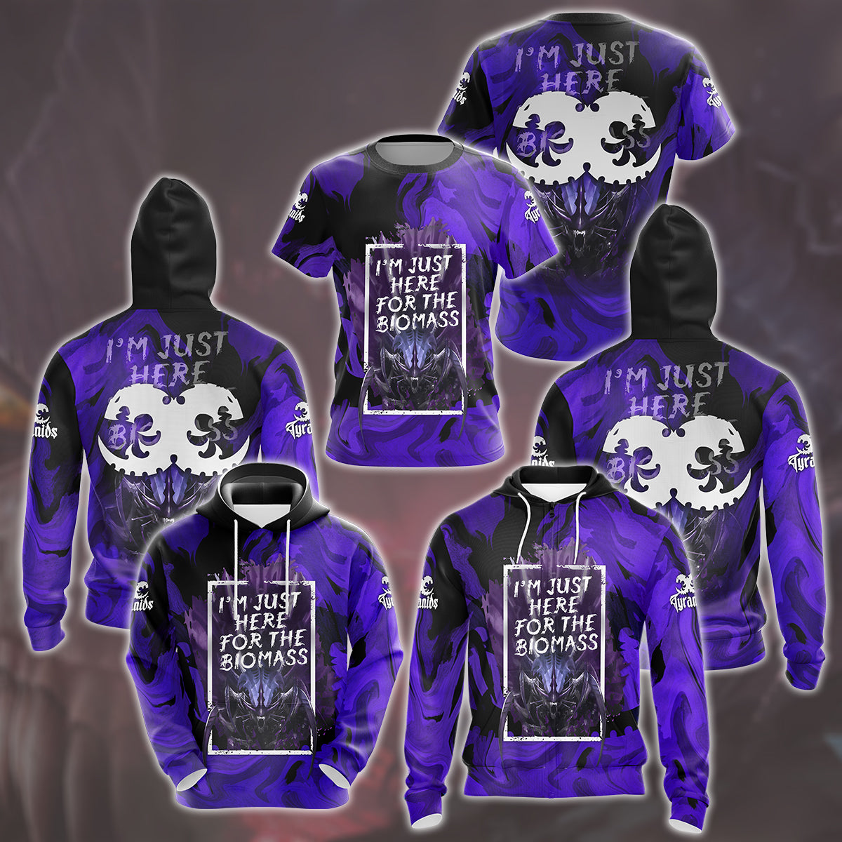 Tyranids I’m Just Here For The Biomass All Over Printed T-shirt Tank Top Zip Hoodie Pullover Hoodie Hawaiian Shirt Beach Shorts Joggers